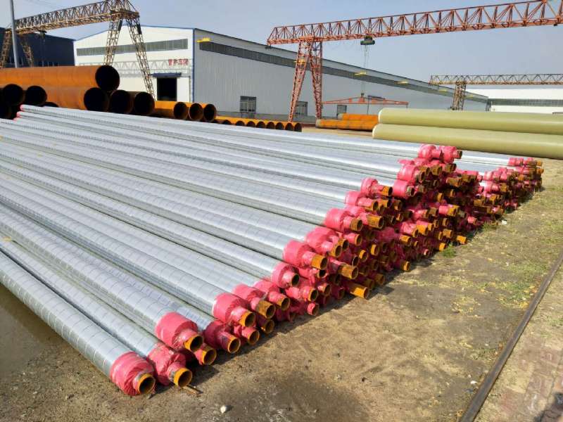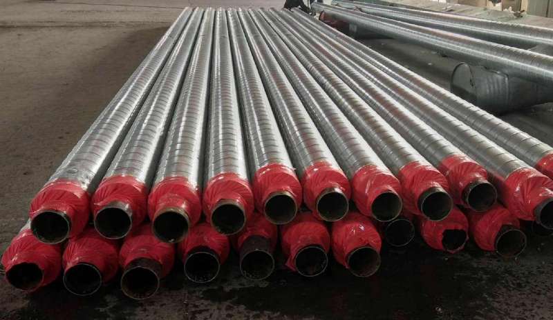 聚氨酯架空保温管是由金属保护管、聚氨脂硬质泡沫塑管和钢管组成。保温层材料为密度60kg/m3至80kg/m3的硬质聚氨酯泡沫,充分添满钢管与套管之间的间隙,并具有一定的粘接强度,使钢管、外套管及保温层三者之间形成一个牢固的整体。具有良好的机械性能和绝热性能,通常情况下可耐温120℃通过改性或与其它隔热材料组合可耐温1